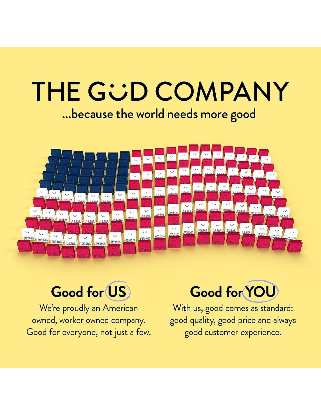 - PORQUE EL MUNDO NECESITA MÁS COSAS BUENAS: Todo lo que hacemos en The Güd Company, lo hacemos con buenas intenciones. Solo vendemos cosas buenas (buenas para ti). Somos un negocio de propiedad estadounidense (bueno para EE. UU.). Además, por cada producto que vendemos, reinvertimos en empresas con impacto positivo en el clima (bueno para el planeta).
