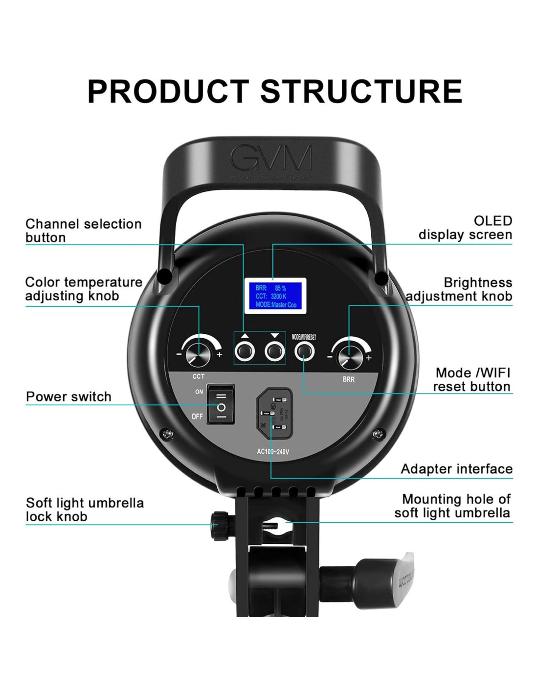 - [Sistema de Control Inteligente APP] La luz de video equipada con sistema de control por aplicación móvil, descarga la aplicación 'GVMEasily' en tu teléfono móvil, y conecta el WIFI 'GVM_LED', y la contraseña es 'gvm_admin', fácil de controlar el color y temperatura precisos, efectivo para tu grabación de video.