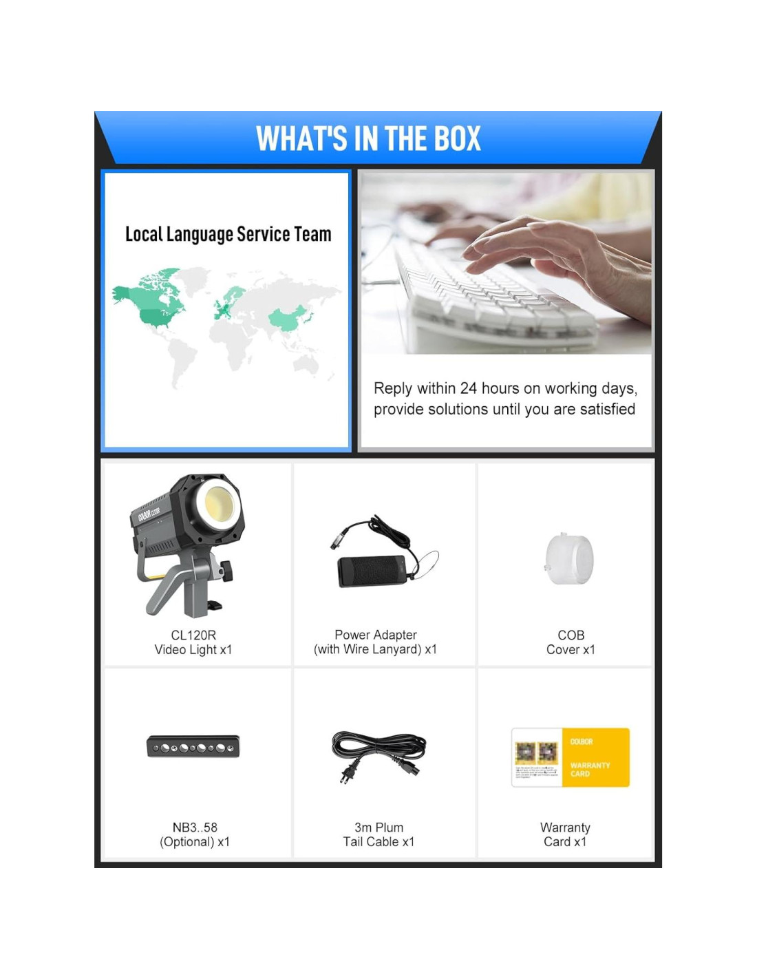 - 120W Luz RGB Continua para Iluminar Todo La luz COLBOR CL120R RGB para estudio ofrece opciones de iluminación a todo color con una salida de 120W. Puedes ajustar finamente la saturación y el matiz, creando tu propia paleta única. Presenta temperaturas de color ajustables (2700K a 6500K) y una calificación de 96+ CRI/TLCI para una representación precisa del color.