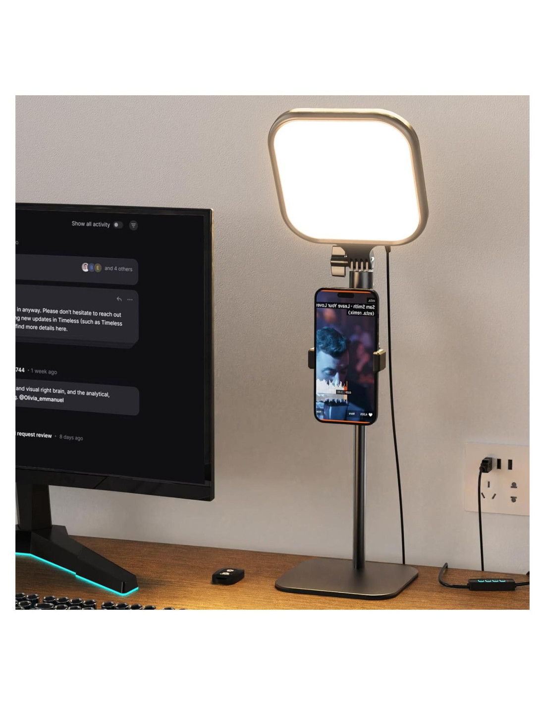 - Altura Ajustable: Con un diseño telescópico que se extiende de 22.86 a 43.18 centímetros, la luz zoom es adecuada para varios configuraciones de escritorio, ya sea usando una computadora de escritorio o una laptop. Los usuarios pueden ajustar la altura según su estatura y posición al sentarse, permitiendo una mejor colocación de la luz en la cara.