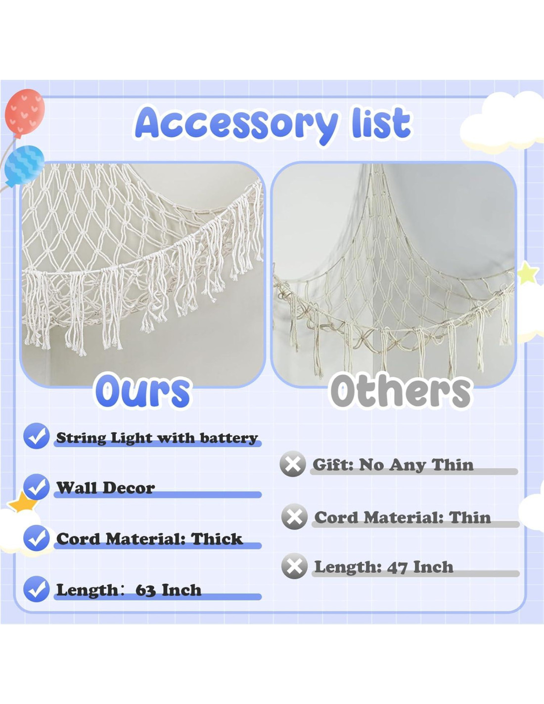 - Componentes incluidos: 3 Ganchos, Red de Hamaca, Cadena de Luz LED de Estrellas