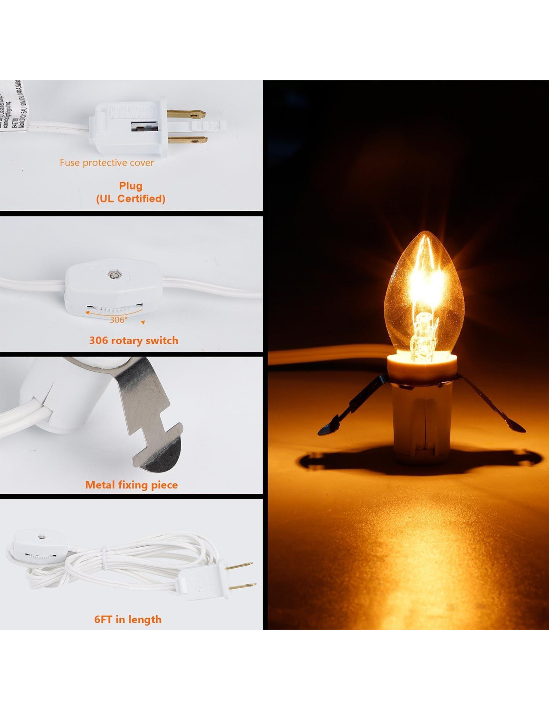 - Interruptor Conveniente: Un interruptor de encendido/apagado previamente montado en los cordones para su conveniencia. Y no tiene que enchufar y desenchufar el socket con frecuencia.