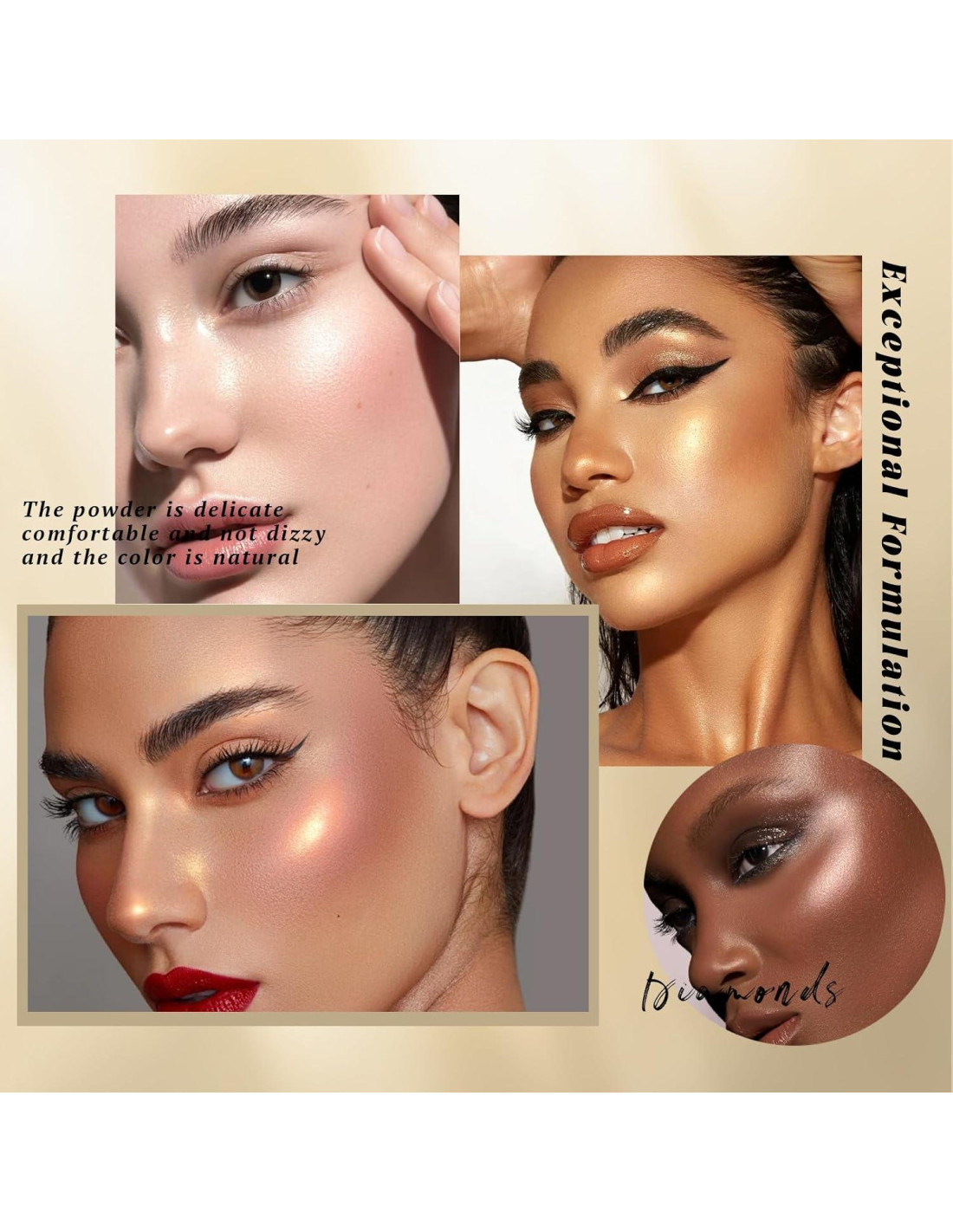 - Textura Suave como la Seda: Con tecnología de polvo horneado, el polvo es fino y suave, fácil de mezclar y se adapta a la piel, solo un deslizamiento para el color, fácil de crear un maquillaje brillante natural, te permite convertirte en el centro de atención del brillo