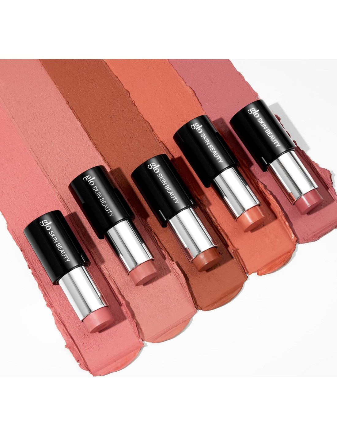 - Mejillas: Aplica tu Barra de Rubor en Crema directamente sobre la piel para un máximo efecto de color o aplica en tu brocha de rostro Glo Skin Beauty favorita o dedos para un enfoque más suave. Presiona suavemente y difumina en las mejillas usando movimientos cortos y suaves hasta lograr una mezcla perfecta.