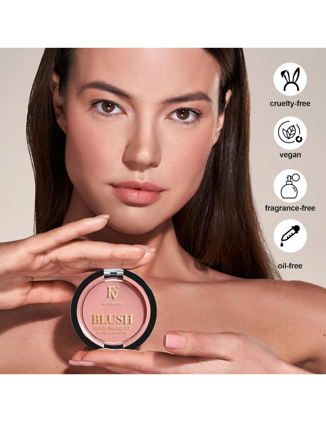- Ecológico y Libre de Crueldad: El rubor en polvo FV es ecológico y orgullosamente libre de crueldad, nunca probado en animales. Al usar nuestro rubor, apoyas la sostenibilidad ambiental y las prácticas de belleza éticas, asegurando que tu elección beneficie tanto a tu piel como al planeta.