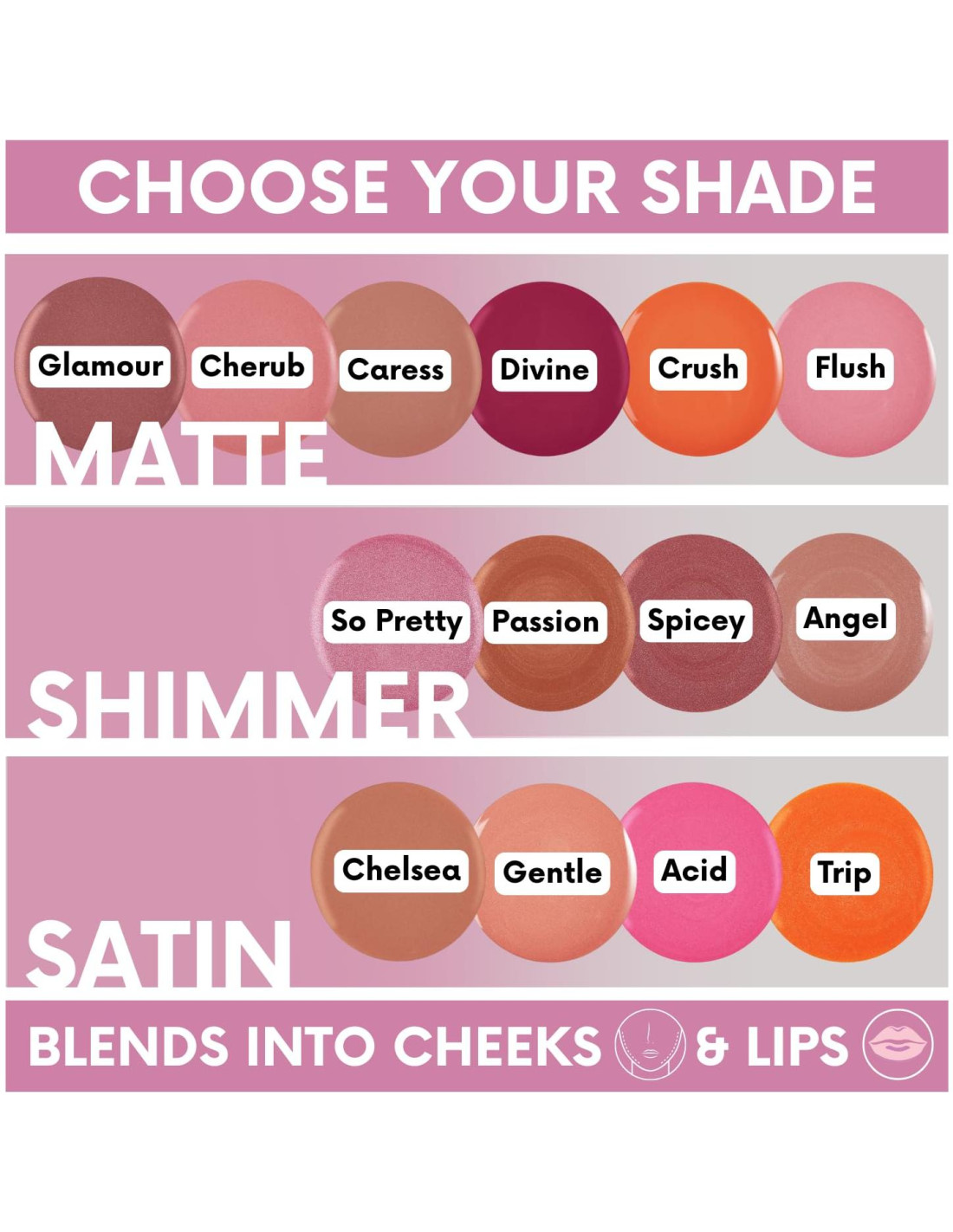 - BLUSH MULTI-USO que se difumina perfectamente en mejillas, labios y ojos, añadiendo un resplandor natural a cualquier look.