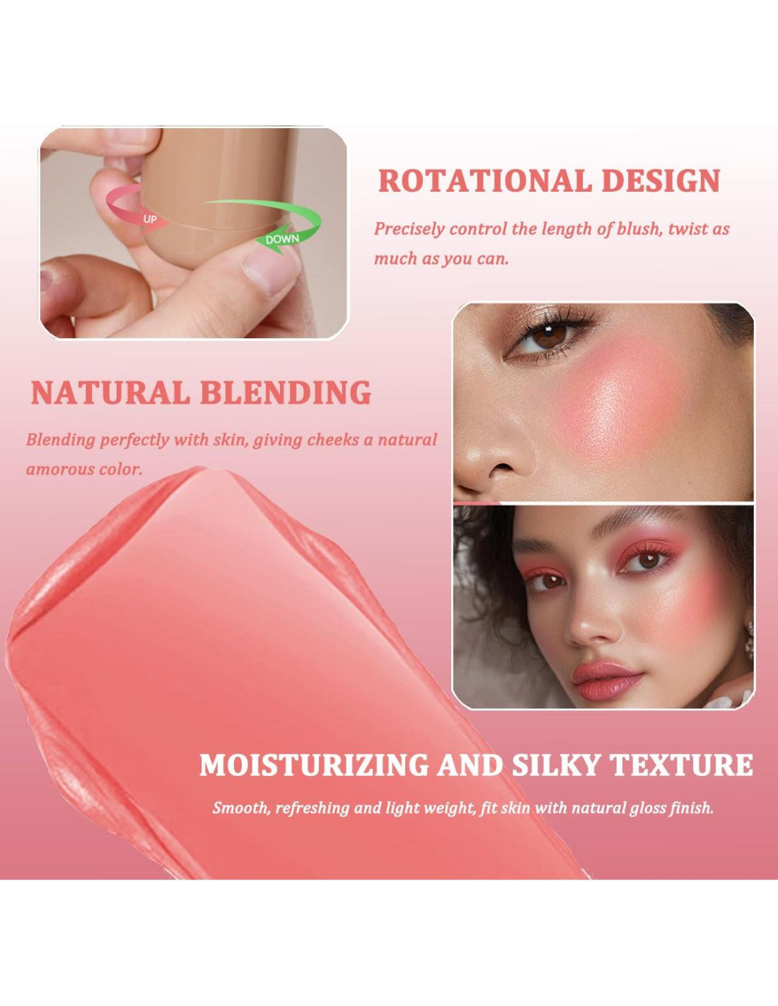 - DISEÑO ROTATIVO: Puedes controlar con precisión la longitud del rubor, gira tanto como necesites. Este rubor se difumina bien solo con tus yemas de los dedos sin la ayuda de herramientas de maquillaje. El bastón de rubor portátil facilita la aplicación y el retoque de tu maquillaje al aire libre.