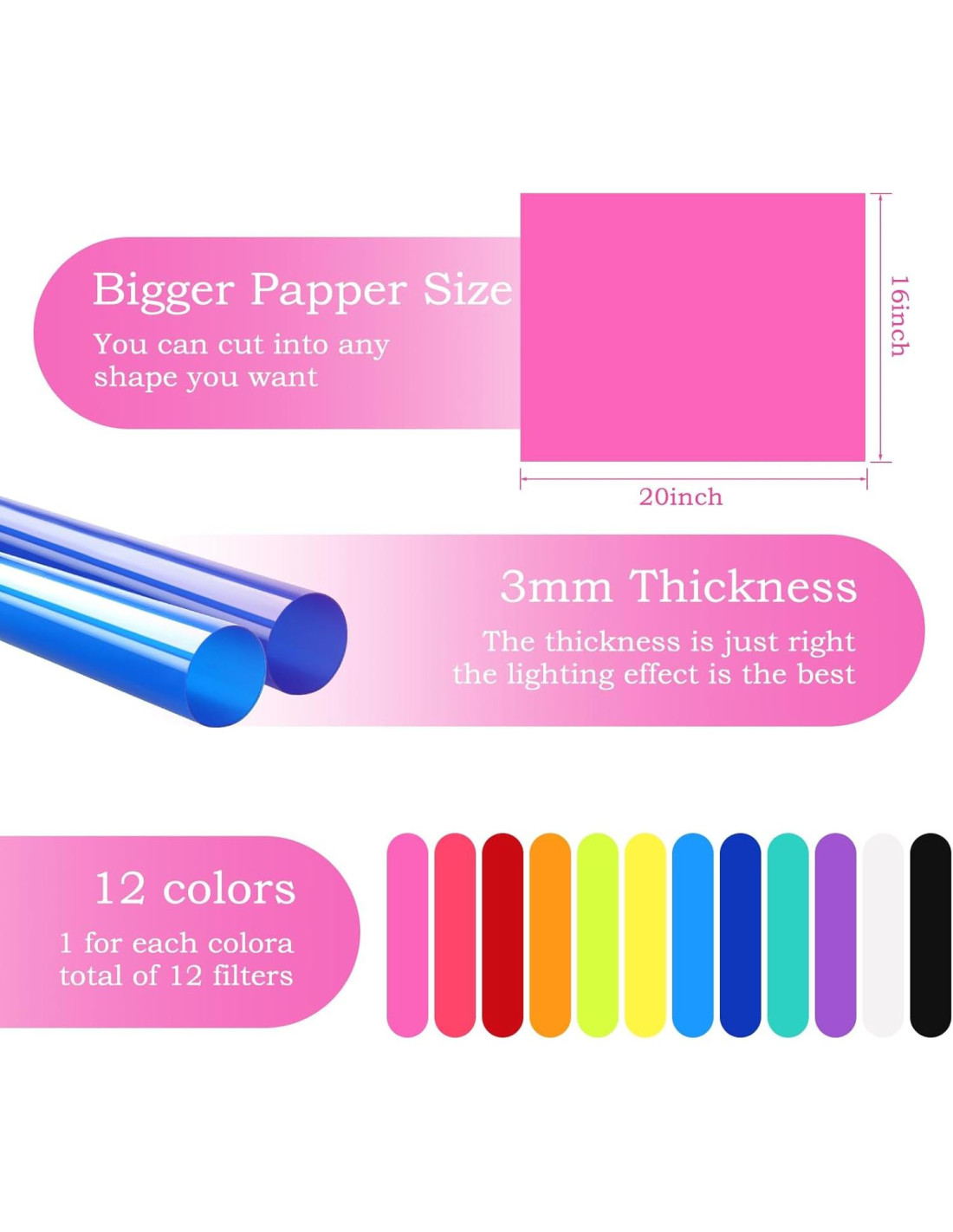 - Amplias Aplicaciones: El filtro de gel de luz es perfecto para luces LED de flash estroboscópico de estudio fotográfico, cine, video, teatro, fiesta y DJ. Transforme cualquier espacio o escena con nuestros filtros de luz que ofrecen una amplia aplicabilidad para una variedad de configuraciones de iluminación.