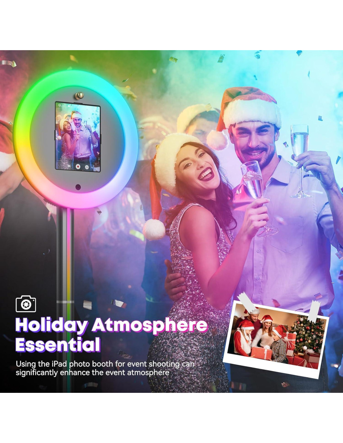 - Anillo de Luz RGB Dinámico para Fotos Perfectas: Captura fotos vibrantes y bien iluminadas con el anillo de luz RGB personalizable. Elige entre una amplia gama de colores para combinar con el tema de tu boda, fiesta o evento corporativo, y asegura que cada foto destaque con efectos de iluminación llamativos.