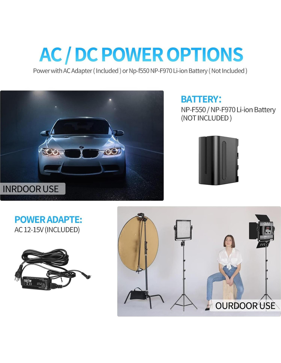 - Opciones de energía AC/DC: la luz de panel LED puede usar dos modos de energía, puedes usar adaptador de corriente y batería F970/750 (no incluida) para suministrar energía.