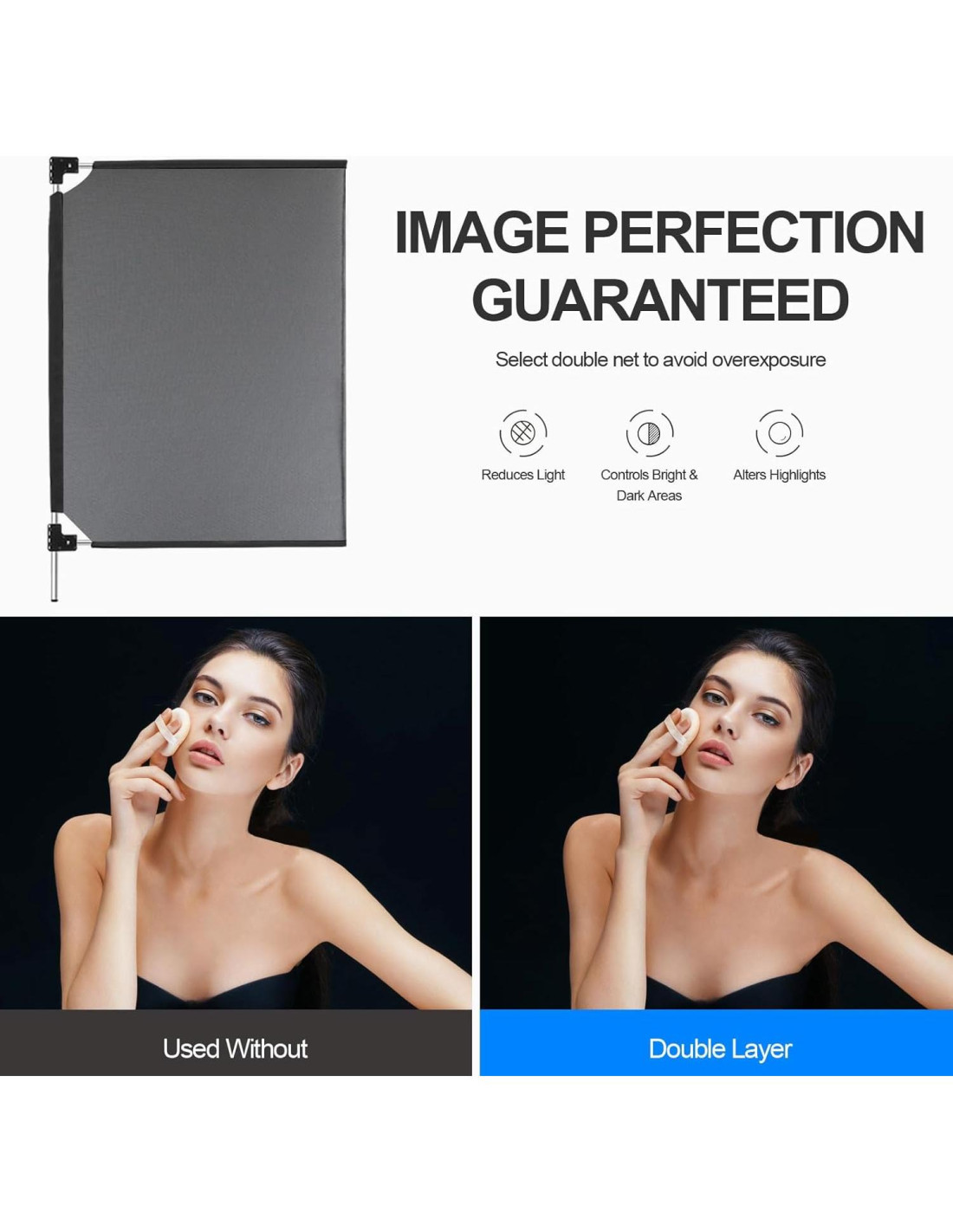 - Conveniente y Flexible: Plegable, portátil, de rápida ensamblaje y desensamblaje. El marco de metal de la bandera con mango es duradero y móvil. Ajusta el ángulo que necesites para obtener un efecto asombroso. Este versátil kit de modificador de luz permite a los fotógrafos combinar los accesorios y dar forma a las luces con creatividad ilimitada. Los marcos plegables y las telas ligeras también hacen que este kit sea fácilmente portátil.