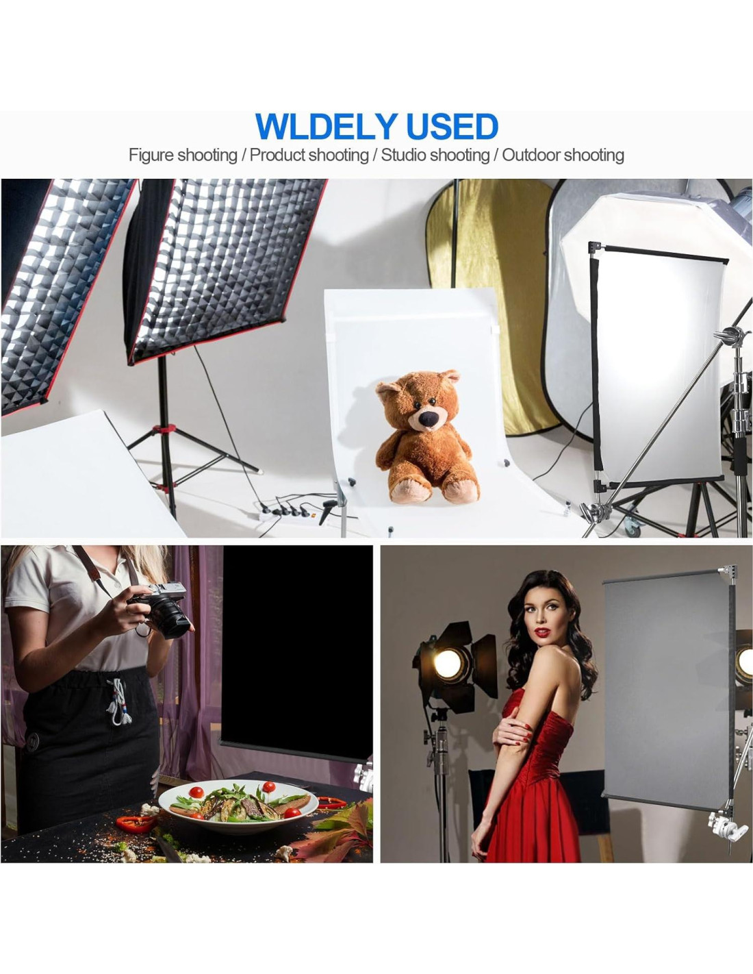 - Multiusos: Perfecto para retratos de cuerpo completo, tomas de productos grandes tanto para uso en interiores como exteriores. Los reflectores 3-en-1 son adecuados para todas las fuentes de luz (luz diurna, tungsteno, flash, etc.).