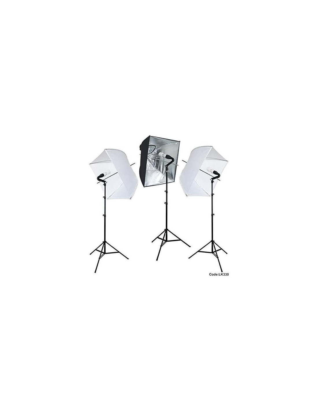 3 x Linco#8806 Zenith Soporte de Luz Ligero de 77" (195.58 cm) - Altura mínima: 32in (81.28 cm) - Altura máxima: 77in (195.58 cm) - Acero fundido para calidad de construcción. - Garantía de 1 año. - Carga máxima: 15lbs (6.8 kg). - Cabeza de perno de zinc. 3 x Linco#5110 Cirrus Cabezal de Luz Individual con Protector de Base de Cerámica y Tapa a Prueba de Suciedad - Base de Cerámica E27 - Cable de alimentación de cobre con interruptor de encendido/apagado - Nueva característica diseñada 1: Cuerpo con Gran Mango - Nueva característica diseñada 2: Protector Verde para reducir la tasa de daño de la base de cerámica - Nueva característica diseñada 3: Tapa a Prueba de Suciedad para usar al almacenar 2 x Linco#3402-1 Paraguas Translúcido Cuadrado Blanco Suave de 24" (60.96 cm) - Más profundo que los paraguas tradicionales - Menos pérdida de luz que los paraguas tradicionales - Casi del mismo tamaño que los paraguas tradicionales de 33" (83.82 cm) (porque su diagonal es de 34" (86.36 cm)) 1 x Linco#3402-2 Reflector Softbox Paraguas Cuadrado Plateado de Estudio Fotográfico de 24" (60.96 cm) - 3 funciones en 1: softbox, reflector, paraguas (con un difusor) - Softbox estilo paraguas: Fácil de ensamblar - Puede ser instalado o desinstalado en el cabezal de luz - Con una abertura flexible para colocar un cabezal de luz 3 x Linco#PP171054 Bombilla Softwhite de Estudio Fotográfico (4100K) - Base de tornillo regular E26. - Más eficiente enérgicamente (Usa 23w de energía, Produce 100w de iluminación)