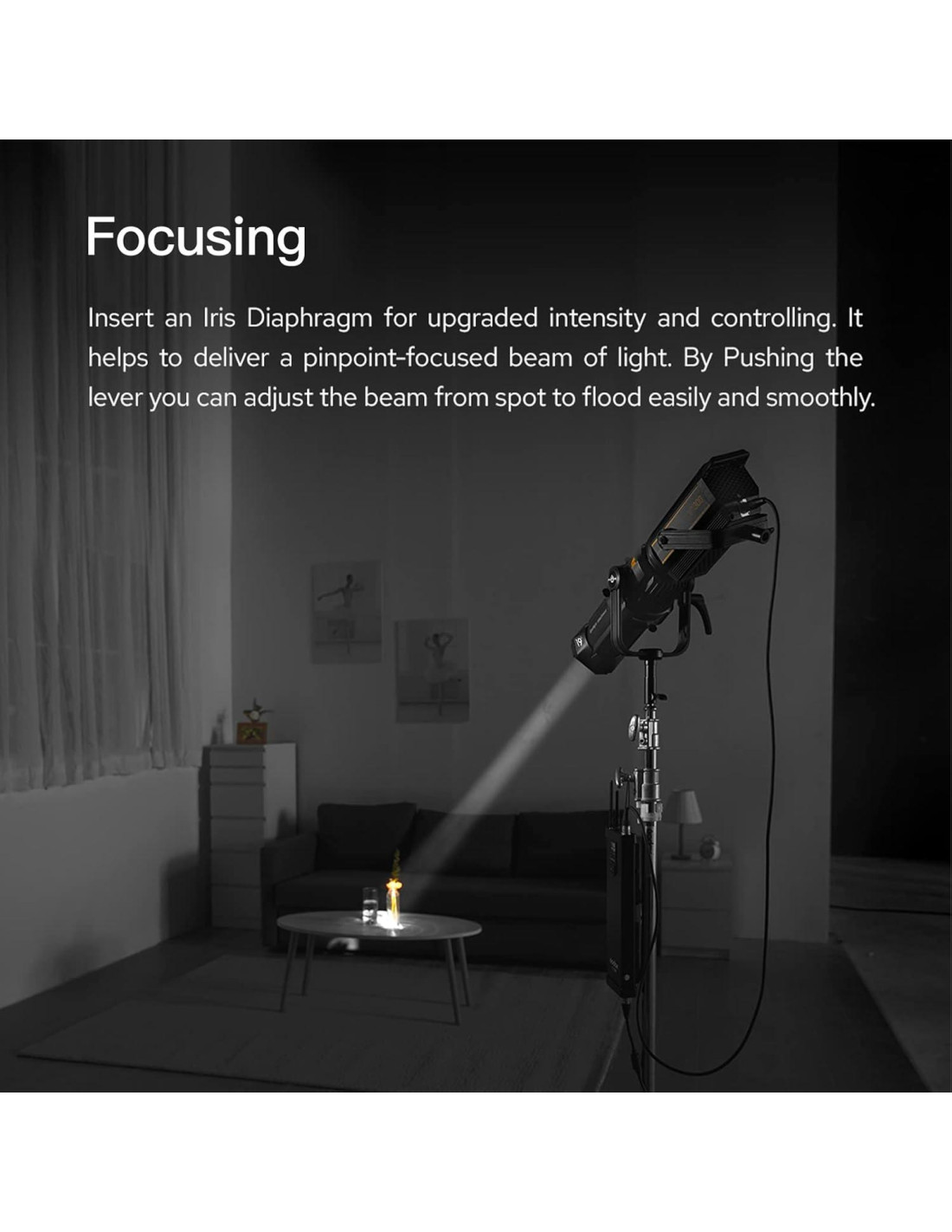 - [Lente de 19 Intercambiable] Se proporciona una lente de 19 para que los creadores den forma a la luz según varios ajustes. Intercambiable fácilmente entre diferentes lentes, el accesorio de proyector permite que fluyan tus ideas creativas mientras mantiene la máxima eficiencia.