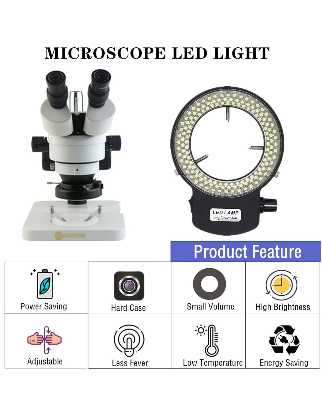 - Luz anular para microscopio: temperatura de color de 6000K, 144 bombillas LED blancas brillantes proporcionan una iluminación anular intensa y enfocada sin sombras.