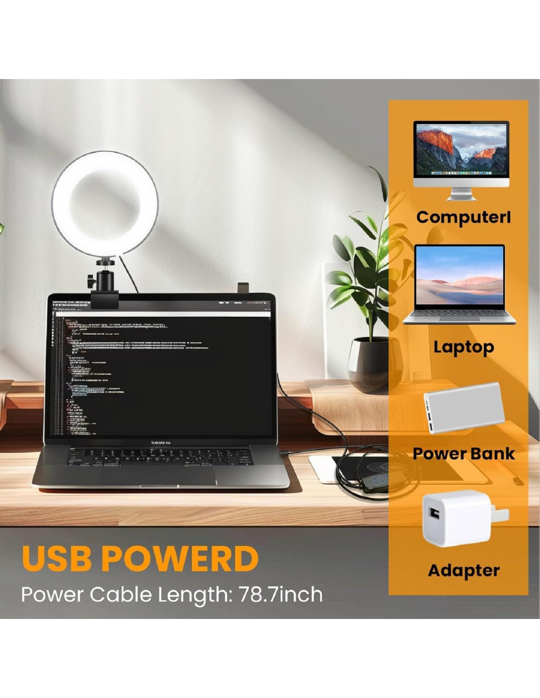 - 3 Modos de Iluminación y 10 Niveles de Brillo: El kit de iluminación para videoconferencias para laptop es brillante pero tiene un regulador incorporado para configuraciones menos brillantes, luz de anillo de escritorio de 6 pulgadas (15,24 cm) con 3 tipos de modos de luz: luz blanca, amarillo cálido, blanco + amarillo cálido, 10 niveles de brillo ajustables, 92 bombillas LED incorporadas, no solo su brillo puede eliminar el ruido de imagen y hacer que el color de tu rostro sea más saturado, sino que también mejora masivamente la calidad de tus videos