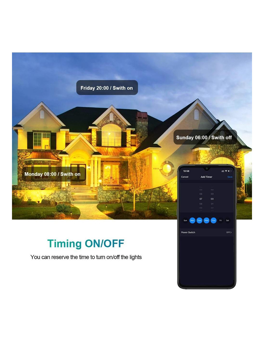 - [Control de App Luz de Seguridad Inteligente] Descargue la app "Smart Life" para controlar esta luz de sensor de movimiento exterior USTELLAR (Solo soporta WiFi de 2.4GHz). Diga adiós a subir constantemente escaleras para ajustar las luces de inundación y disfrute de la comodidad y seguridad de controlar la luz con su teléfono. Incluso puede controlar la luz de forma remota, como encenderla desde su oficina.