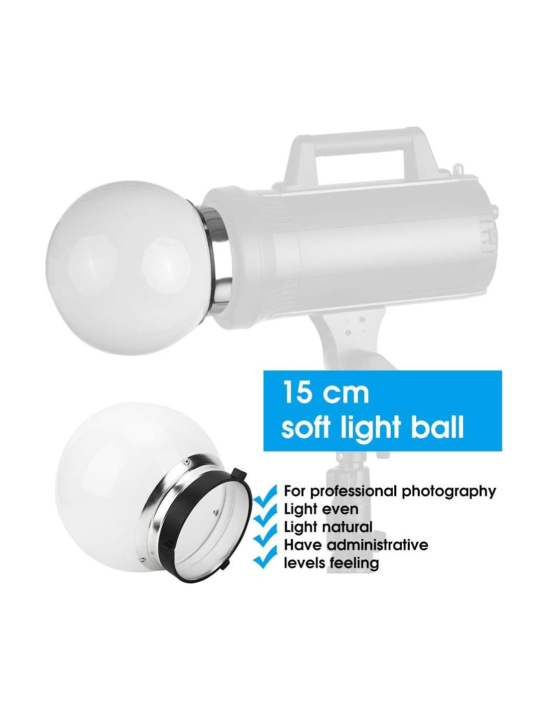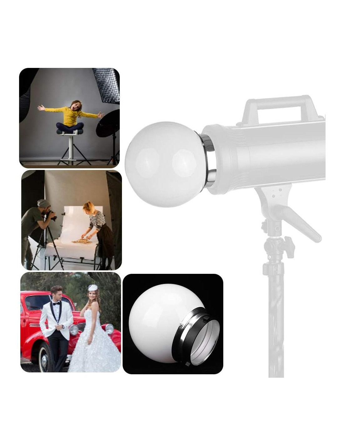 Compatible con montura Bowens, se puede cargar fácilmente en una variedad de accesorios de montura Bowens, y la bola de luz suave aporta un rango más amplio de luz suave a tus fotos o videos.