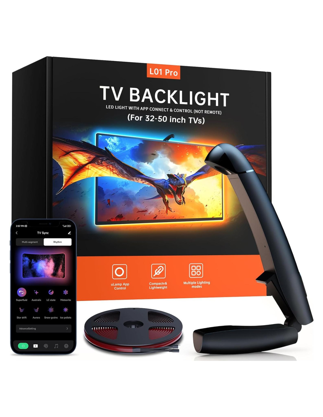 - Control de aplicación inteligente: Personaliza y controla tus luces de TV que cambian con la TV sin esfuerzo a través de la aplicación uLamp fácil de usar, ofreciendo configuraciones de escena personalizadas y ajustes de color sin problemas, creando la atmósfera ideal para cada momento.