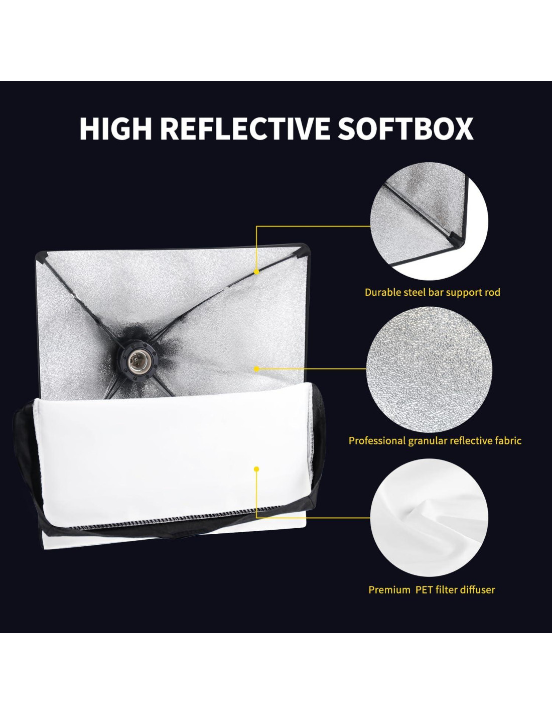 - Qué Recibirás: Este kit de iluminación softbox viene con 1 x softbox; 1 x bombilla LED; 1 x trípode; 1 x manual de instrucciones y 1 x bolsa de almacenamiento. Cualquier problema que encuentres durante el uso o cualquier defecto que surja, ten la seguridad de que estamos aquí para ayudarte.