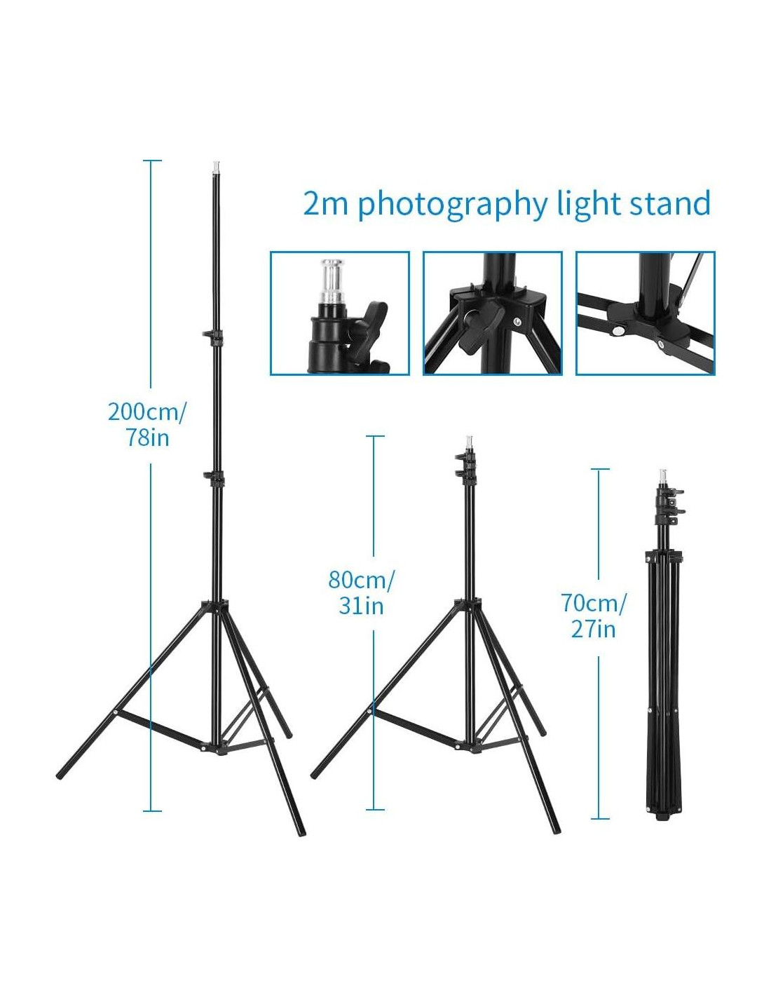 - Soporte de Luz: 2 x soporte de luz (25mm), 1 x soporte de luz (30mm) fuerza de trabajo para soporte de carga pesada, asegúrese de que los softboxes funcionen de manera estable.