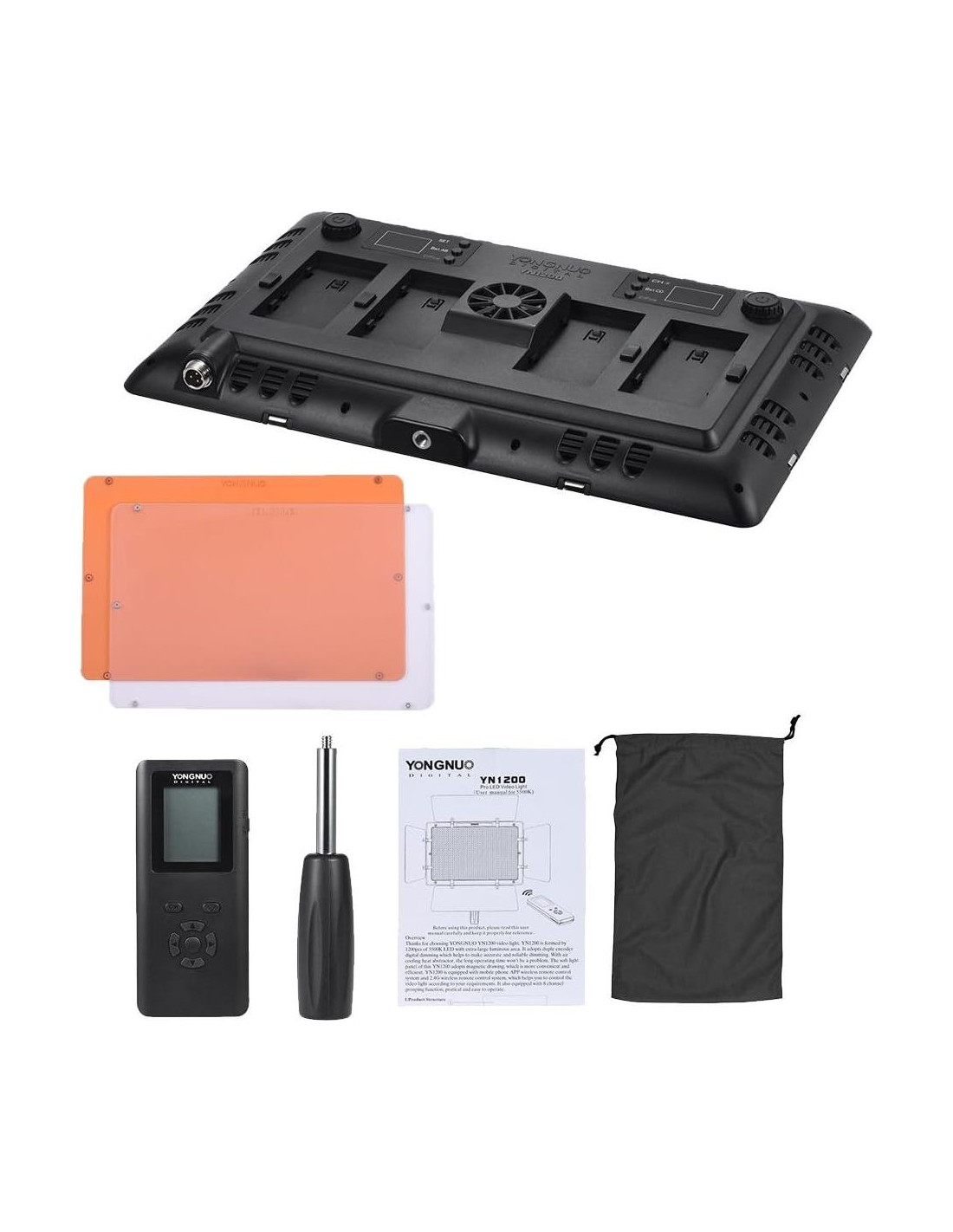 - Sistema de Control por APP y Remoto YN1200 puede ser controlado de forma remota inalámbrica por APP móvil y control remoto. La APP móvil soporta control multicanal, controlando a lo sumo la intensidad de luz de 8 luces LED de video en diferentes canales. Usar el control remoto para ajustar la intensidad de la luz es mucho más simple y fácil, puedes configurar la luz en el sitio fácilmente.