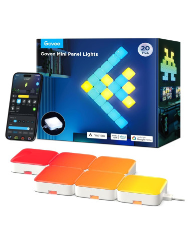 - Reconocimiento Inteligente de Gráficos: La nueva generación de Luces de Panel Mini Govee para decoración del hogar cuenta con un chip MCU integrado, que puede realizar el reconocimiento inteligente de gráficos a través de la aplicación después de unir las luces del panel, facilitando la operación.