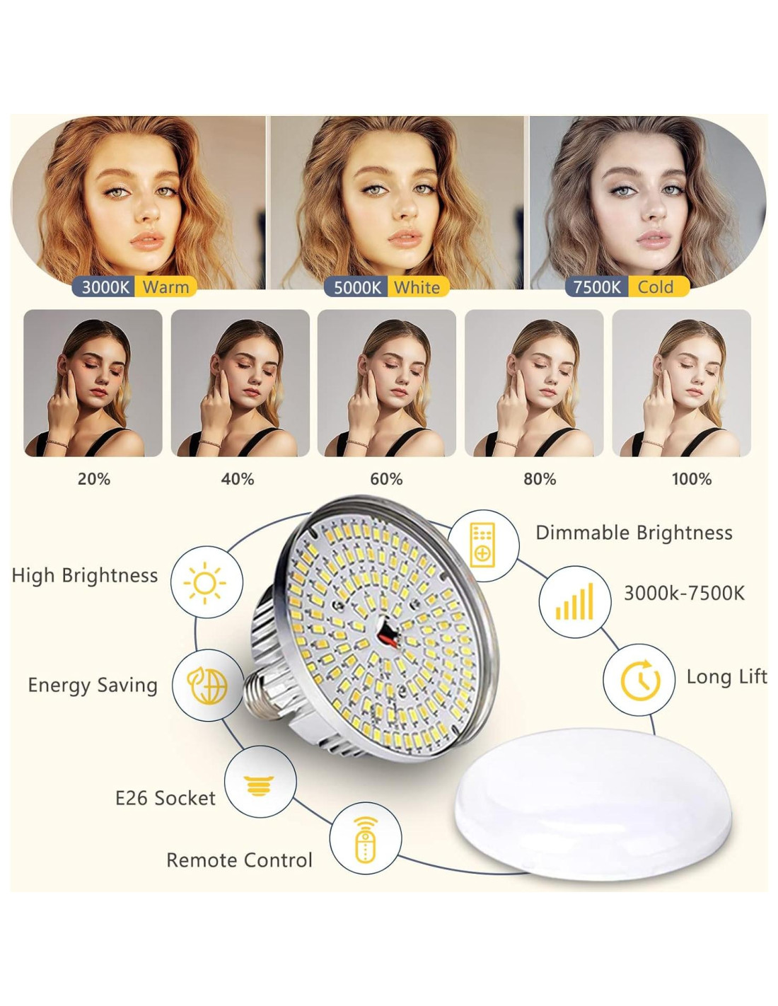 - Qué Recibirás Nuestro paquete contiene todo lo que necesitas: 1 X Softbox, 1 X Control Remoto, 1 X Bombilla LED, 1 X Trípode de 60in (152,4 cm) y 1 X Difusor Suave.