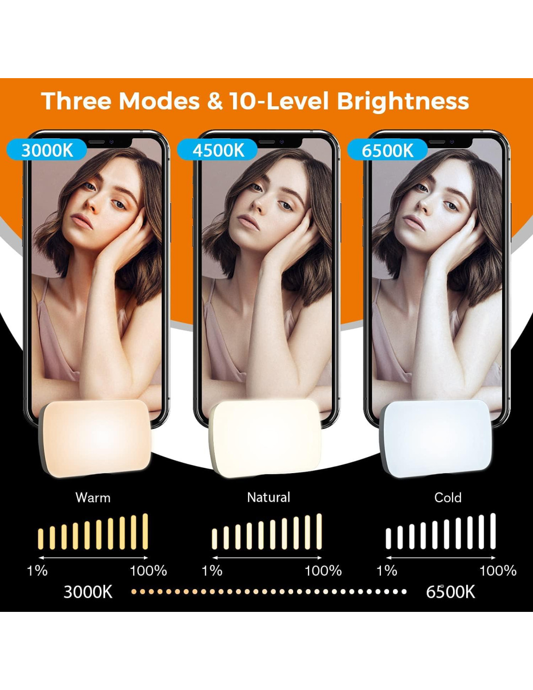 - Brillo y Temperatura de Color Ajustables. Con una placa de luz suave, esta iluminación para zoom en computadora hace que la luz suplementaria sea más suave y no deslumbrante, y protegerá bien tus ojos. 3 modos de luz (cálido, natural y luz fría) y brillo ajustable de 10 niveles de 2500K a 6500K, ilumina tus tonos de piel y combina con tu entorno.