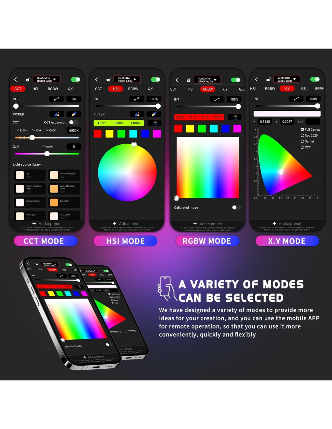 - [Tecnología de Mezcla de Seis Colores RGBACL - Superando el Gama de Color RGBWW Tradicional] El 300C utiliza un exclusivo sistema de luz de seis colores RGBACL (Rojo/Verde/Azul/Ámbar/Cian/Lima), con 3 chips de luz dedicados adicionales. Esta innovación rompe las limitaciones de los sistemas de cuatro colores tradicionales, logrando una cobertura del 110% del gamut de color Rec.2020. El Ámbar añadido mejora la profundidad de los tonos cálidos, mientras que el Lima eleva la reproducción de verdes de alta saturación, permitiendo una riqueza de color de calidad cinematográfica y gradientes suaves-representando con precisión tonos extremos inalcanzables por luces RGBWW.