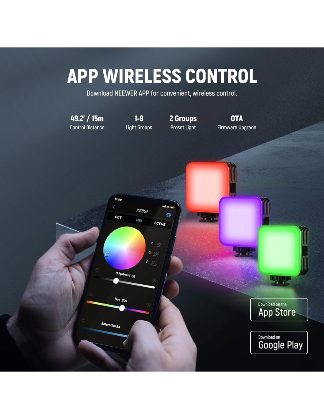 - Estilo: Luz de cámara RGB62 con control de app (2 Paquete)