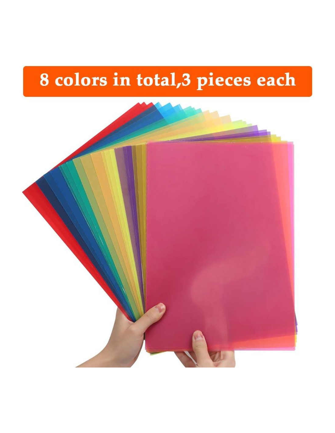 - [Colores Vibrantes] estas hojas de película de plástico PVC tienen 8 colores, amarillo, rosa, púrpura, naranja, azul, rojo, verde, etc., Diferentes colores satisfacen tus diferentes necesidades