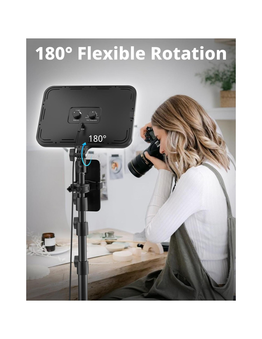 - Ajuste de Luz Flexible: El diseño de poste ajustable de 3 secciones se extiende hasta 165 cm, permitiendo a los usuarios ajustar fácilmente la altura según diferentes necesidades de grabación. La cabeza de la lámpara puede rotar 180, asegurando que la fuente de luz esté dirigida a la posición óptima, mejorando aún más los resultados de grabación.