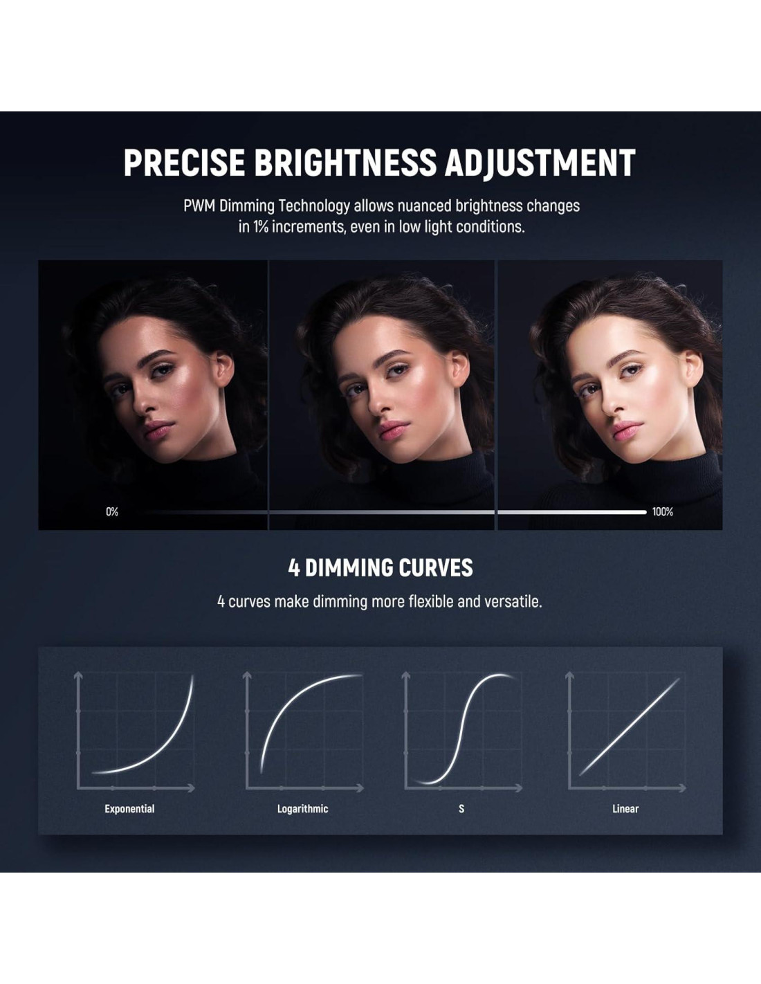 - [Regulación PWM Precisa & Luz Diurna Fría] Con tecnología de regulación PWM, los niveles de brillo son ajustables con precisión del 0 al 100% en incrementos del 1%. 4 tipos de regulación (exponencial, logarítmica, S y lineal) permiten un ajuste de iluminación preciso en diferentes condiciones. Alto CRI 97+ y TLCI 98+ aseguran una fiel reproducción del color. 5600K luz diurna fría ofrece una temperatura de color uniforme. 9 efectos especiales hacen que los videos sean creativos y distintos. Adecuado como luz principal o luz de relleno para configuración de iluminación profesional