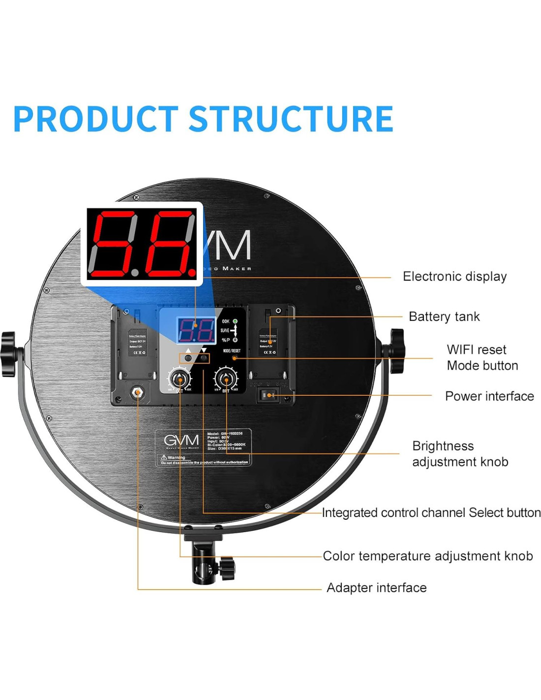 - [Garantía Sin Preocupaciones] GVM proporciona soporte técnico profesional en EE. UU., garantía de devolución de dinero de un mes y garantía de reemplazo gratuita de un año. El paquete incluye 1x luz clave LED, 1x soporte C-clamp, 1x adaptador de corriente, 1x bolsa de transporte.