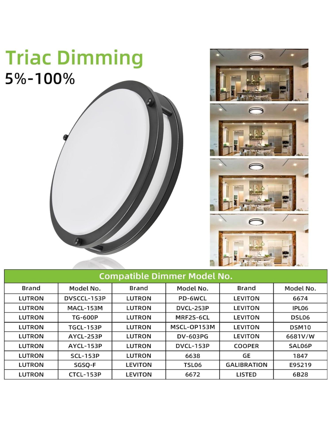 - CAMBIO DE TEMPERATURA DE COLOR (CCT) - La luz de techo emite seleccionable, puedes preestablecer tu temperatura de color de luz preferida: blanco suave, blanco brillante o luz diurna (2700K/3000K/3500K/4000K/5000K). Regulable con regulador triac. (regulador triac no incluido)