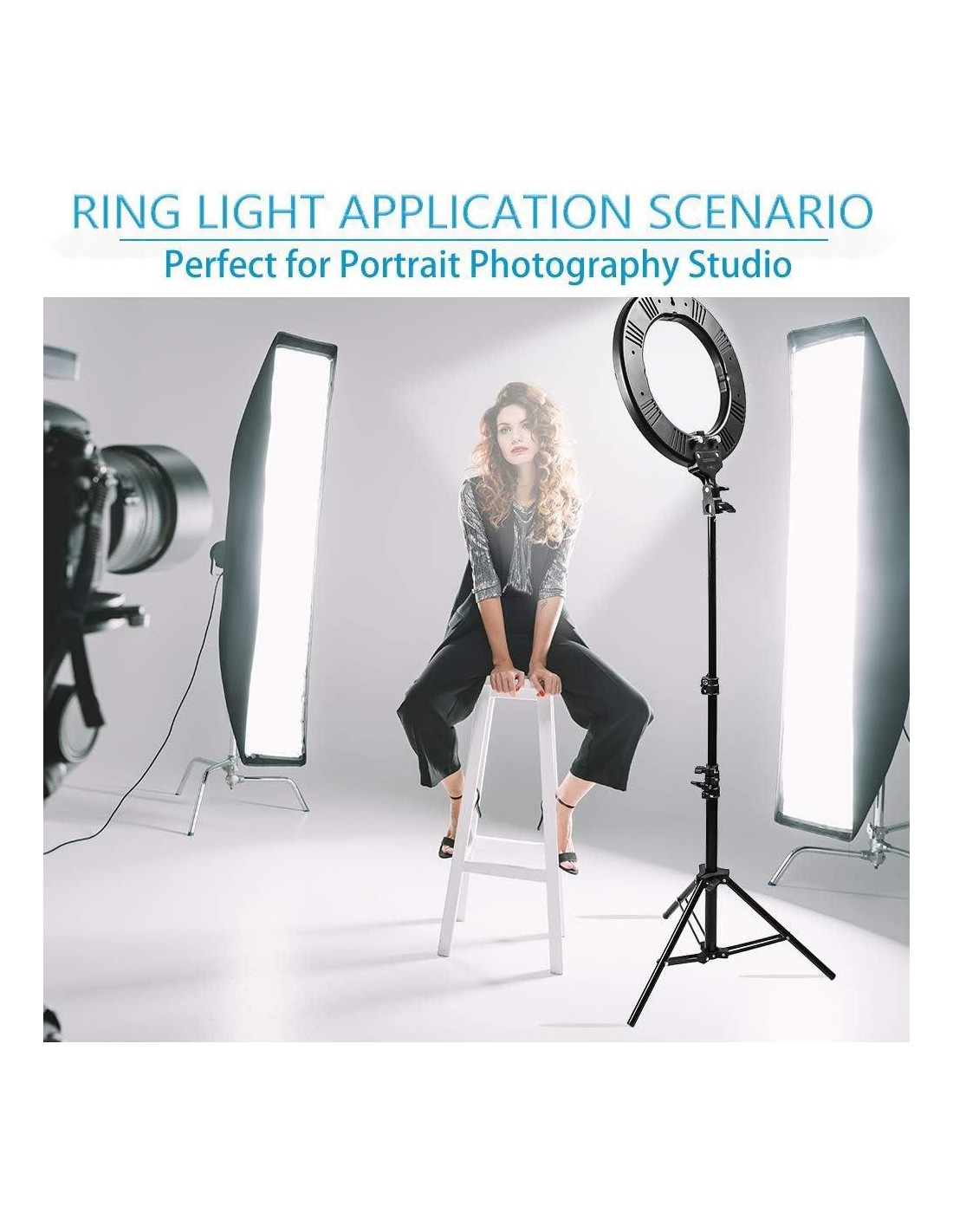 - [Fácil de Configurar] Coloca la luz de anillo LED en el soporte ligero y conéctala a una toma de corriente, puedes comenzar tu trabajo. Ajusta la altura del soporte para diferentes necesidades y cabezal de luz rotatable 180 para adaptarse a tu aplicación deseada.