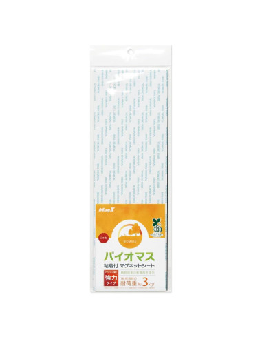 Ayuda a suprimir las emisiones de CO2 Adhesivo Certificado Biomasa Características: Utiliza adhesivo certificado por marca de biomasa. Adhesivo a base de plantas no tejido La biomasa es 30% Hoja magnética fabricada en Japón. Fabricado en nuestra propia fábrica en Japón. Fuerza magnética normal: MSWF-1030BM | MSWF_2030BM | MSWFGR-12-100-10BM Fuerte Fuerza Magnética: MSWFP-1030BM | MSWFP-2030BM | MSWFPGR-12-100-10BM Se puede cortar al tamaño deseado. Se puede cortar con tijeras o cortadores. Escenas para usar (ejemplo) Antideslizante para proteger tus ideas. En la parte trasera de la caja. En la parte trasera del bote de basura. En la parte trasera de la regleta. - En la parte trasera de una pizarra grande. Especificaciones del producto (comunes). País de fabricación: Japón. Materiales: Cuerpo principal: Hoja magnética, adhesivo de biomasa Precauciones de uso: Por favor, verifica el empaque del producto antes de usar. La capacidad de carga depende de la pintura y el grosor de la superficie de acero y la forma del objeto que deseas adjuntar. No usar en artículos que puedan caer o dañar metales preciosos o artículos costosos.