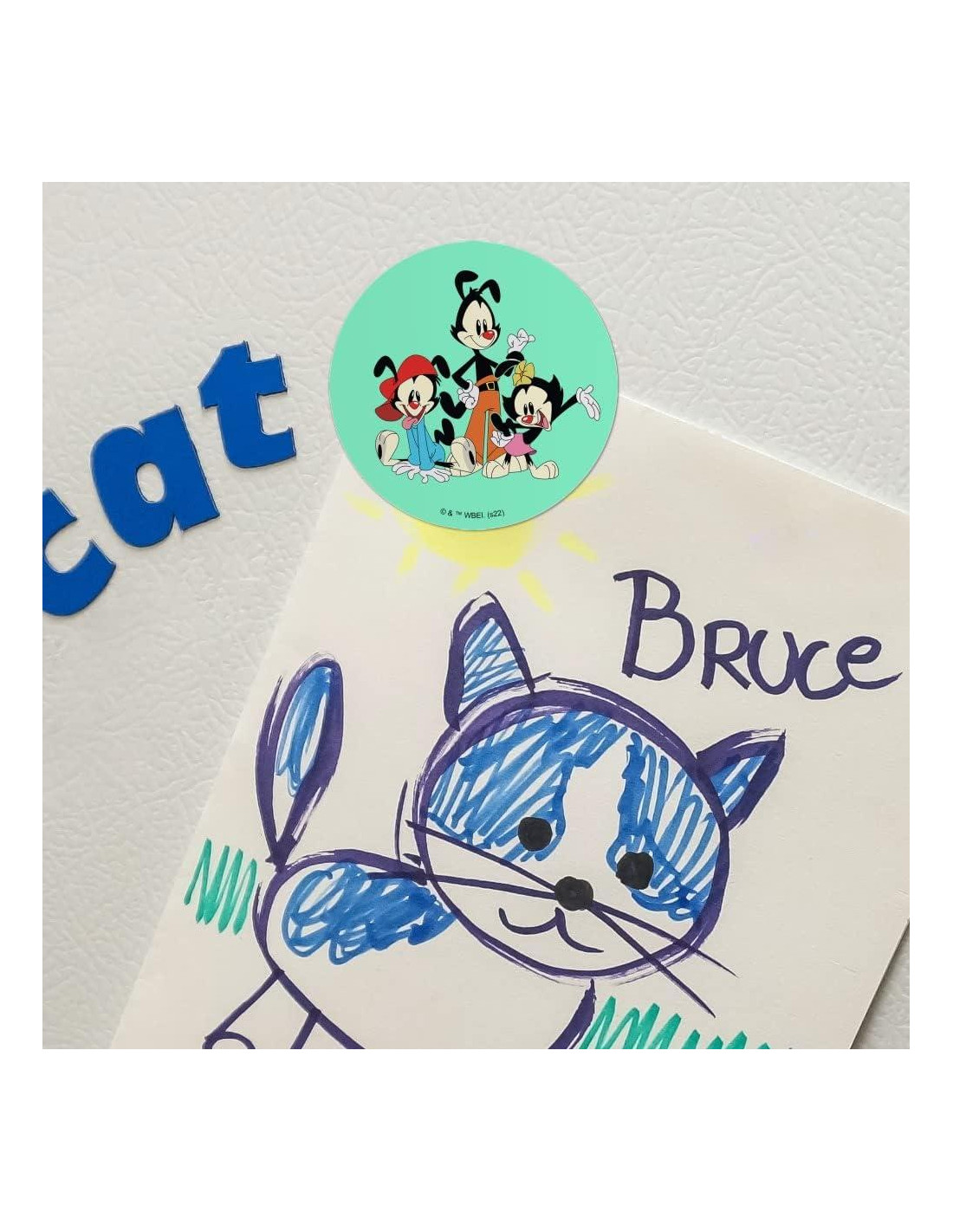 Acerca del producto: Decora cualquier superficie magnética con este increíble conjunto de imanes de Graphics and More. Este fuerte conjunto de imanes de vinilo flexible y de hoja completa es ideal para uso en interiores y exteriores. Se adhiere a la mayoría de los automóviles, refrigeradores, lavavajillas, archivadores, casilleros, lavadoras, secadoras y más. Simplemente separa los imanes del empaque pre-cortado para usarlos. Los imanes están impresos con tintas resistentes al agua y a los rayos UV para resistir la decoloración en interiores o exteriores. Cada imán tiene aproximadamente 2.5" (6.4cm) de diámetro. Acerca del diseño: Animaniacs es un programa de variedades, con cortos que presentan un gran elenco de personajes. Aunque el programa no tenía un formato establecido, la mayoría de los episodios estaban compuestos por tres mini-episodios cortos, cada uno protagonizado por un conjunto diferente de personajes, y segmentos de transición. Las características de la serie incluían su música, comentarios sociales satíricos, referencias a la cultura pop y frases características de los personajes. Si eres fan, ¡te encantará este producto oficial de Animaniacs!