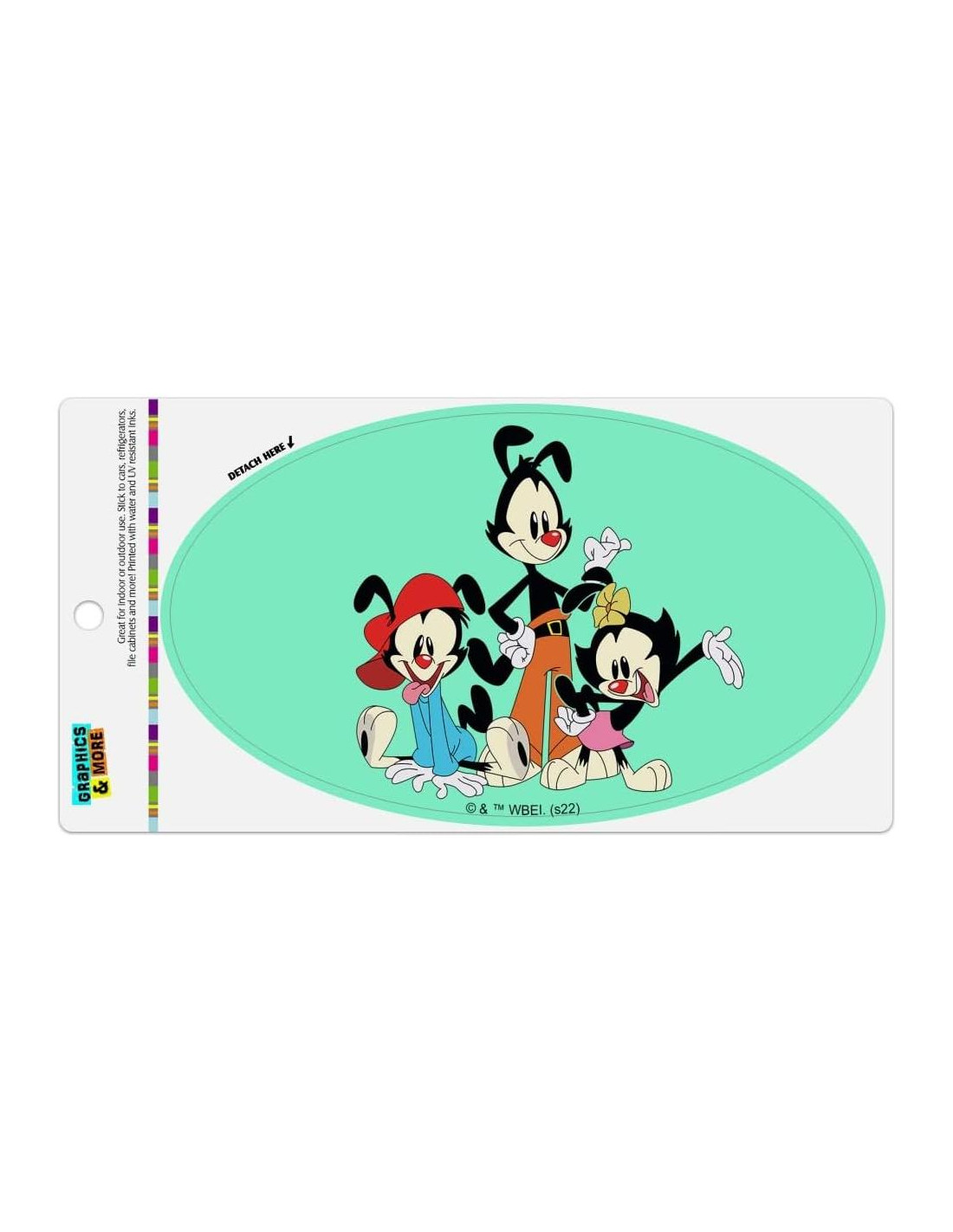 Acerca del producto: Decora cualquier superficie magnética con este increíble imán de Graphics and More. Este imán flexible de vinilo, de hoja completa y resistente, es ideal para uso en interiores y exteriores. Se adhiere a la mayoría de los automóviles, refrigeradores, lavavajillas, archivadores, casilleros, lavadoras, secadoras y más. Simplemente separa el imán del empaque pre-cortado para usar. El imán está impreso con tintas resistentes al agua y a los rayos UV para resistir la decoloración en interiores o exteriores, y mide aproximadamente 7.0" (17.8cm) x 4.0" (10.2cm) de tamaño. Acerca del diseño: Animaniacs es un programa de variedades, con cortos que presentan un gran elenco de personajes. Aunque el programa no tenía un formato establecido, la mayoría de los episodios estaban compuestos por tres mini-episodios cortos, cada uno protagonizado por un conjunto diferente de personajes, y segmentos de transición. Las características de la serie incluían su música, comentarios sociales satíricos, referencias a la cultura pop y frases características de los personajes. Si eres fan, ¡te encantará este producto oficial de Animaniacs!
