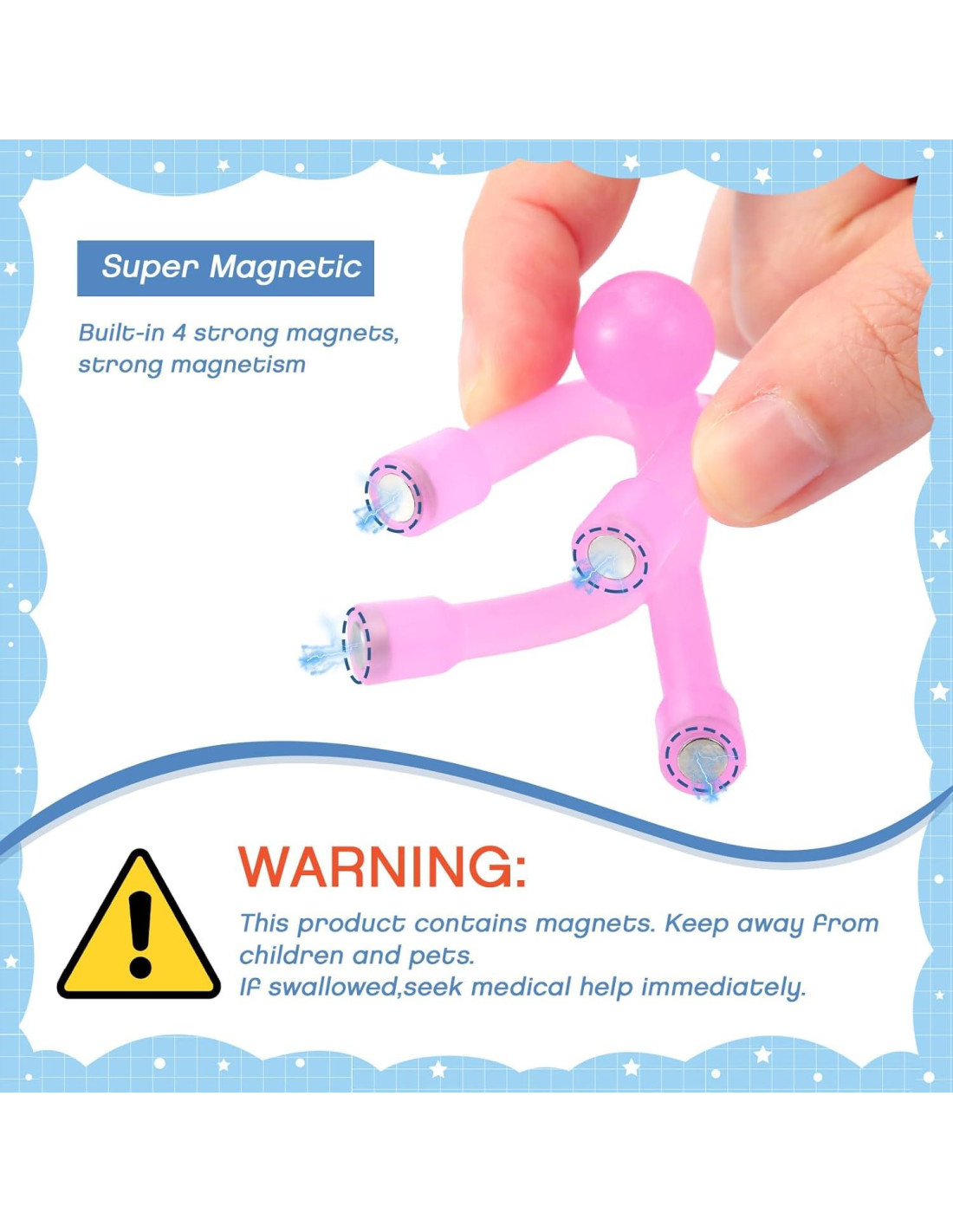 - Material confiable: los imanes de nevera son principalmente de resina sintética, confiables, ligeros, flexibles y doblables; Hay 4 imanes integrados en las manos y pies del juguete, que se pueden absorber fácilmente en el imán, facilitando su uso.