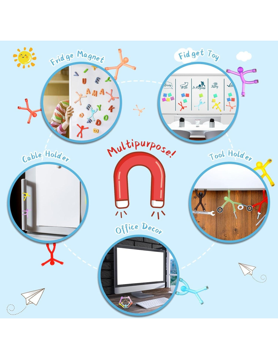 - Ampliamente aplicados: el imán humanoide colorido se puede aplicar para levantar tus coches de juguete, modelos, fotos, notas, souvenirs, etc., facilitando tu estudio y trabajo, aliviando el estrés, mejorando tu estado de ánimo y aumentando la eficiencia.
