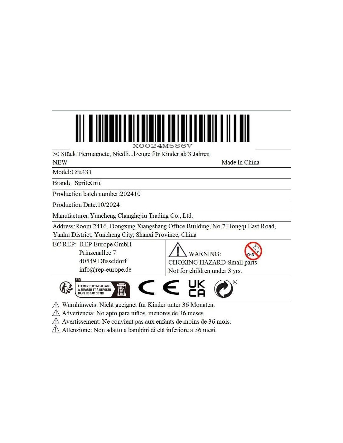 - Número de modelo del artículo: Gru431