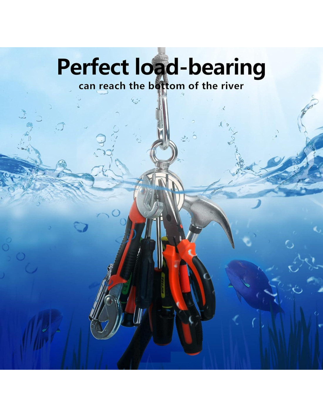 - Kit de Pesca con Imán: Nuestros imanes de pesca incluyen imanes de pesca de 760 LBS de fuerza de atracción que son el peso perfecto para hundirse en el fondo, cuerda de nylon de 65 pies (19,81 m) que es mucho más fuerte y resistente, un par de guantes para proteger tus manos de la contaminación, 242 Threadlocker para el tornillo de ojo, un fuerte gancho de grapple ayuda a recuperar objetos más pesados.