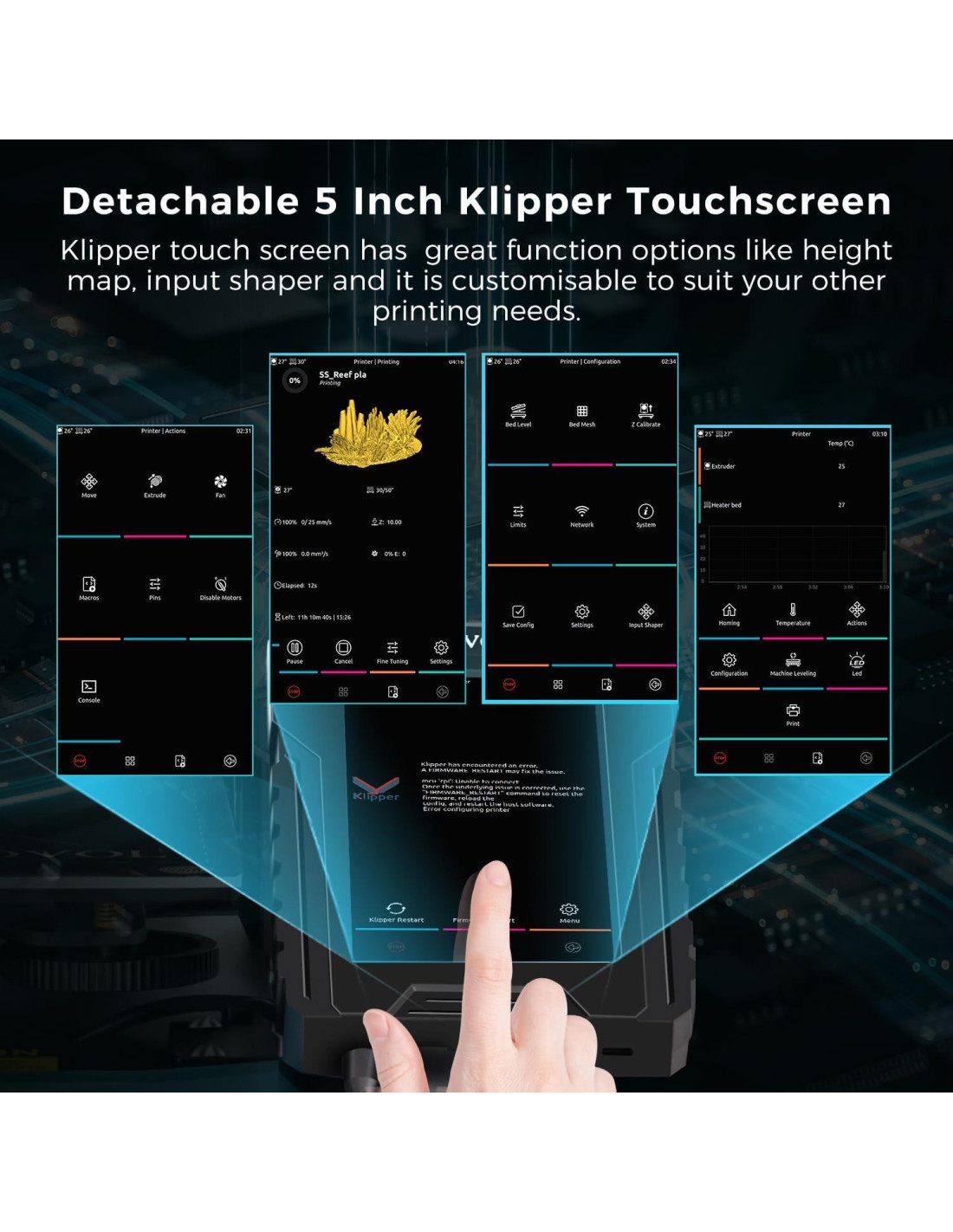 - [Velocidad máxima de impresión 500mm/s] El firmware Klipper permite que la SV07 Plus alcance hasta 500mm/s como máximo. La SV07 Plus está equipada con una pantalla táctil de 5 pulgadas y 480x800 de alta resolución que te brinda una experiencia totalmente diferente a la de las pantallas de perilla y las pantallas táctiles normales de 4.3 pulgadas en el mercado. Klipper también ofrece una variedad de opciones de funciones, incluyendo el mapa de altura y el formador de entrada, mientras que puedes personalizar según tus necesidades específicas.