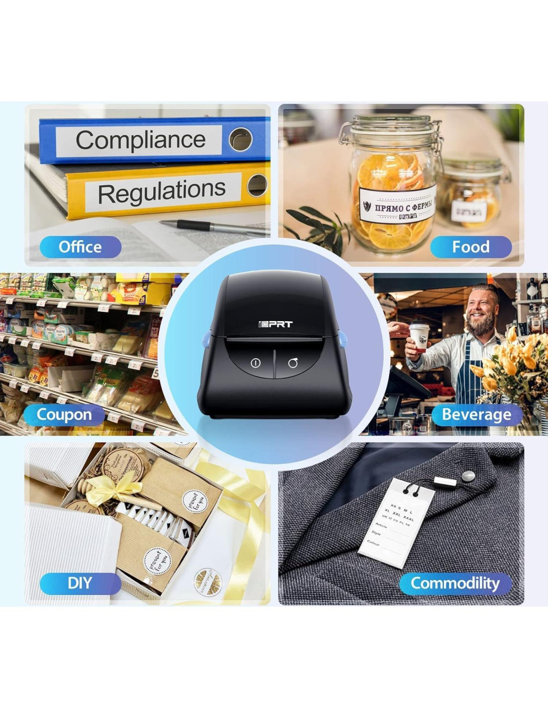 - [Excelente Rendimiento de Impresión] Con una resolución de 203DPI y una alta velocidad de impresión de 100 piezas de etiquetas de 2"x3" por minuto (102mm/s, 50% más rápido que las impresoras de etiquetas comunes), la impresora de etiquetas térmica de escritorio sería tu gran ayuda en la vida y el trabajo, funcionando excelentemente en la impresión.