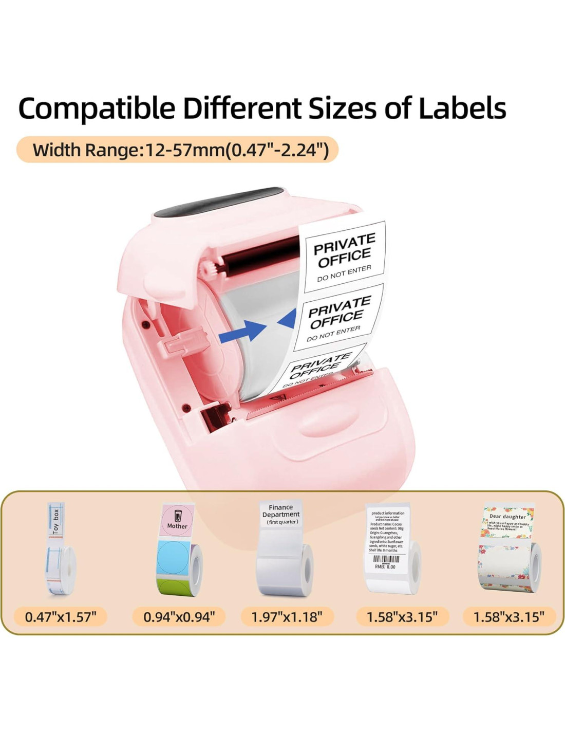 - [Uso Generalizado] La impresora de etiquetas Bluetooth tiene una amplia variedad de usos y posibilidades creativas. Disfruta etiquetando cualquier cosa en cualquier lugar como pequeños negocios: ropa, manualidades, venta al por menor, joyería, etc. Etiquetas de nombre, códigos de barras, etiquetas de precio, etiquetas de fecha, etiquetas de ropa, etiquetas de alimentos, etiquetas de dirección, etiquetas de joyería. Te ahorra mucho tiempo en escribir etiquetas a mano, permitiéndote enfocarte más en tus pequeños negocios.