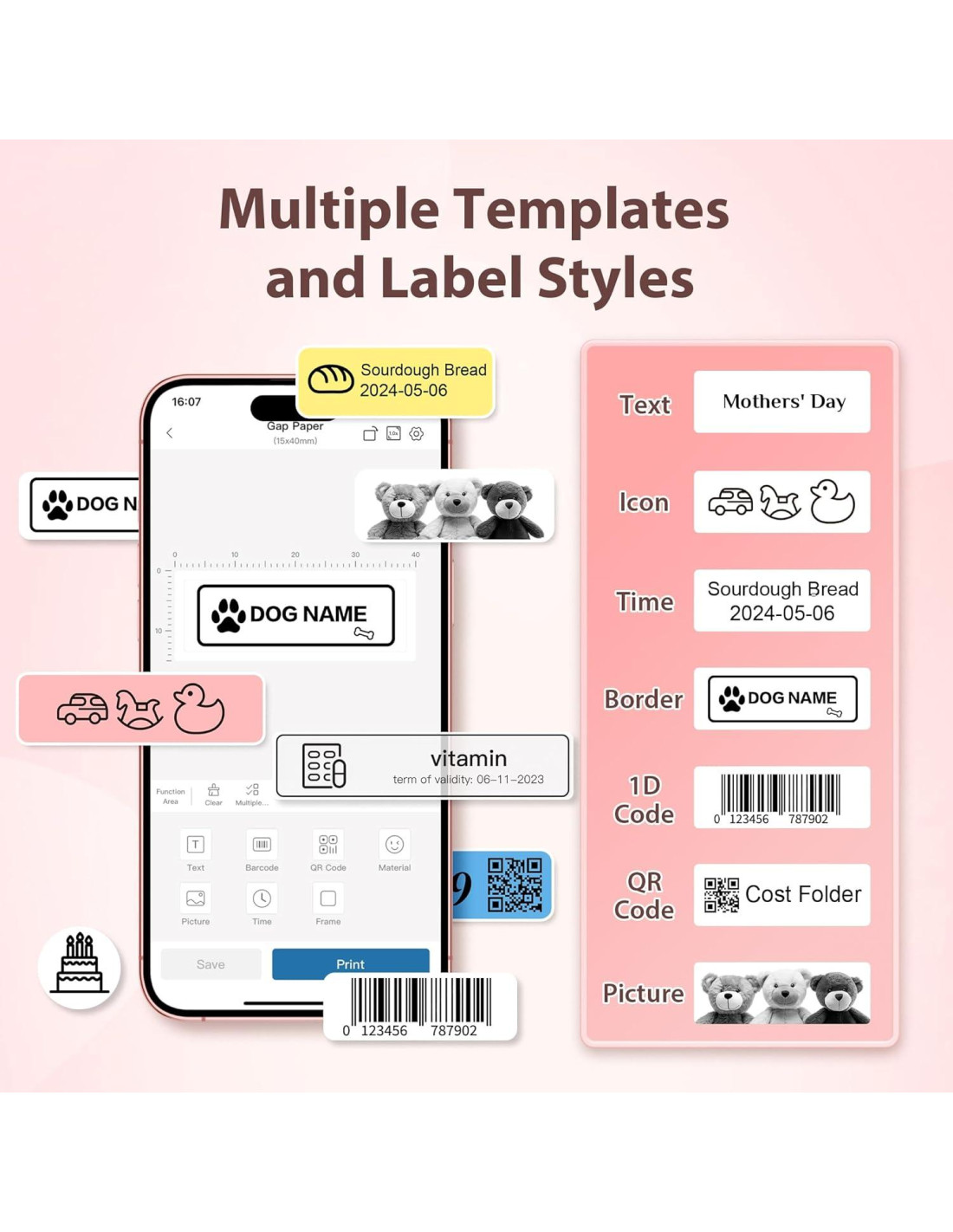 - Etiquetadora con Múltiples Plantillas Creativas Trabaja con nuestra máquina de etiquetar con cinta para desatar tu creatividad con funciones y plantillas gratuitas. La aplicación de la Impresora de Etiquetas Bluetooth ofrece una variedad de estilos de cinta para etiquetadoras con más de 90 fuentes, más de 10 idiomas y más de 450 opciones de material. Esta característica hace que nuestra impresora de etiquetas térmica sea capaz de satisfacer tus necesidades para etiquetas personalizadas de bricolaje