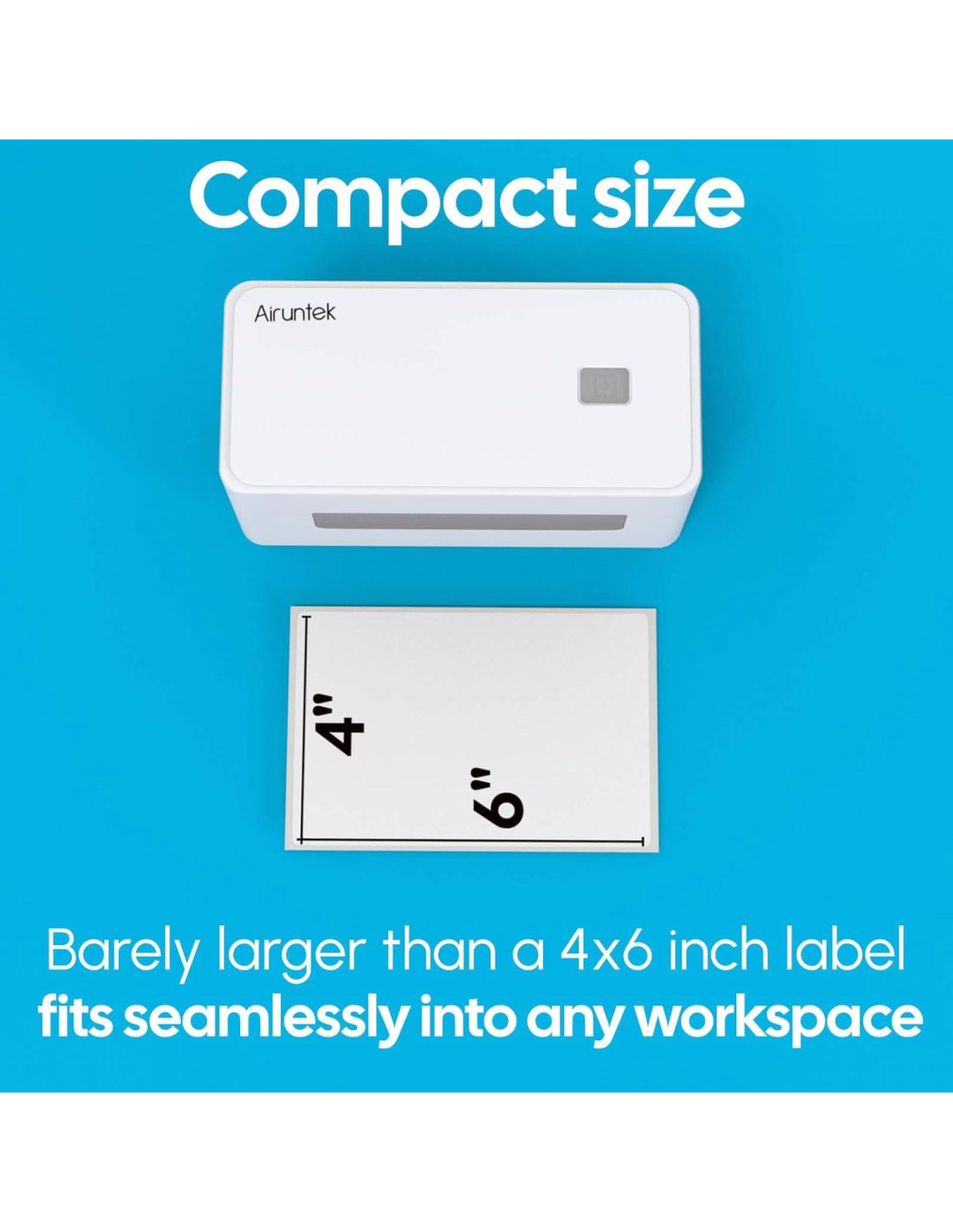 Disfruta de una impresión sin complicaciones con tres formas de conectarte: Ya sea que estés enviando desde un almacén, gestionando inventario o dirigiendo una pequeña empresa, puedes imprimir etiquetas a tu manera - por cable o inalámbrico, a tu conveniencia. Ahorra tiempo en cada trabajo de impresión con una impresora térmica de alta velocidad que ofrece rendimiento donde más cuenta. Con una velocidad de impresión de hasta 6 pulgadas por segundo (152mm/s), puede manejar grandes volúmenes sin esfuerzo - convirtiéndola en la opción perfecta para vendedores de comercio electrónico, almacenes, oficinas y mostradores de venta. Y con una resolución de 203 DPI, cada etiqueta sale nítida y clara - sin manchas, sin retrasos, sin segundas oportunidades. No se necesita tinta ni tóner La impresión térmica simplifica el mantenimiento y reduce costos. Calidad de impresión consistente Salida nítida y limpia etiqueta tras etiqueta. No dejes que el tamaño te engañe - esta impresora es solo un poco más grande que una etiqueta de 4x6, lo que la hace perfecta para espacios reducidos, escritorios pequeños o configuraciones móviles. Su diseño compacto es ideal para oficinas en casa, mostradores de venta, estaciones de envío o donde sea que el espacio sea limitado. A pesar de su pequeño tamaño, ofrece impresión de alta velocidad y resultados nítidos, al igual que una unidad de tamaño completo.