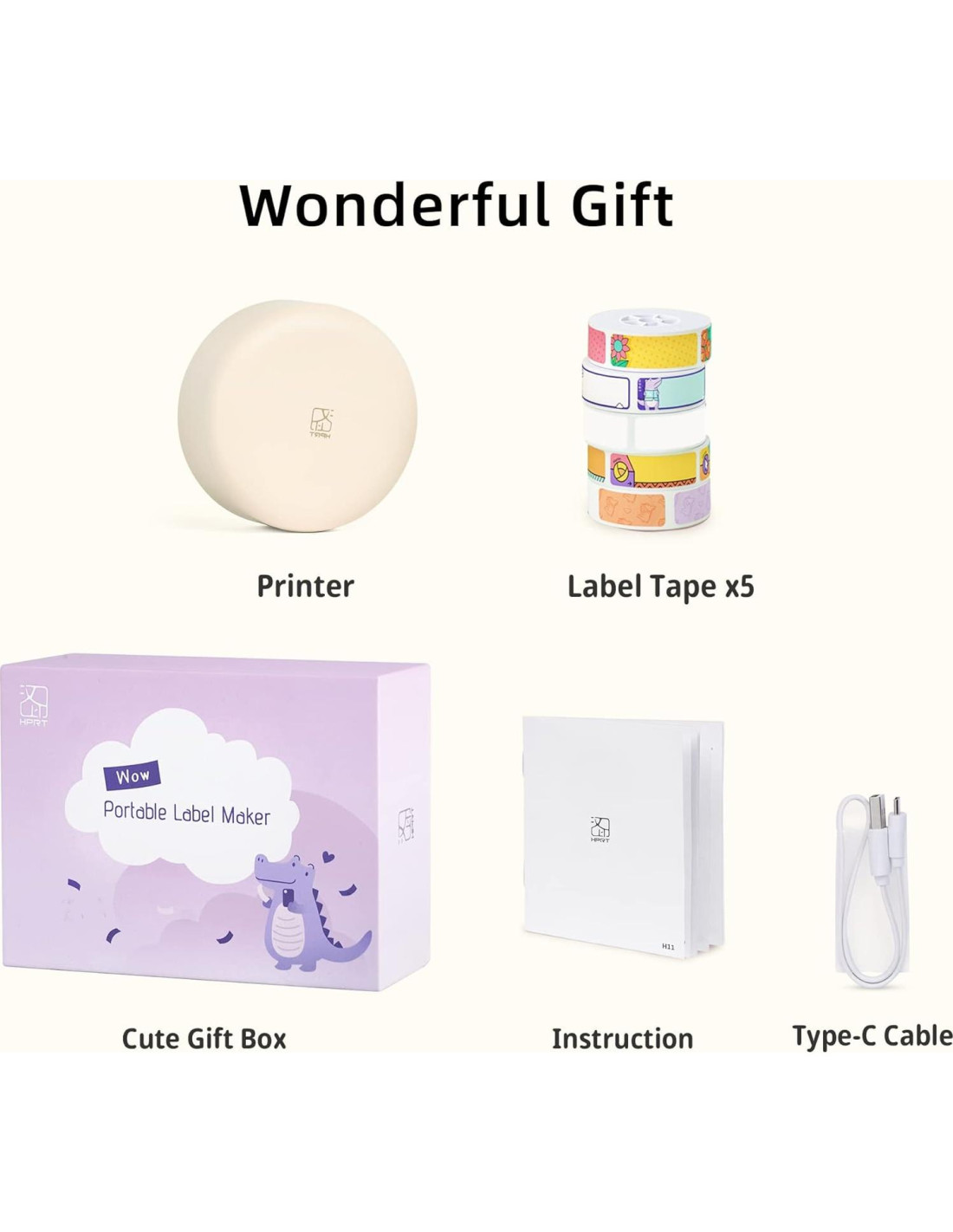- Maravillosas Opciones de Regalo: Con su adorable impresora de etiquetas y muchas cintas de etiquetas disponibles, esta máquina de impresora de etiquetas con cinta es el regalo perfecto para amigos y familiares durante el Año Nuevo/Día de San Valentín/Día del Niño/Halloween/Día de Acción de Gracias/Navidad.